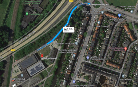 De zaaltrainingen vinden plaats op twee locaties. De bekende Kennemer Sporthal naast de ijsbaan en in de sporthal van het Spaarne College aan het Badmintonpad 1 in Haarlem. Voor de nieuwste leden: deze locatie is te vinden door vanaf de rotonde van de Verspronckweg en Kleverlaan het Badmintonpad in te fietsen of rijden. De entree grenst aan het grasveldje aan de ‘achterkant’ van het gebouw, zie onderstaande kaartje en deze https://maps.app.goo.gl/biuozfwkwvvca1mz8