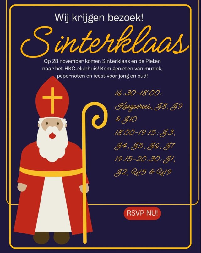 Op vrijdag 28 november vieren we Sinterklaas met alle jeugdteams.