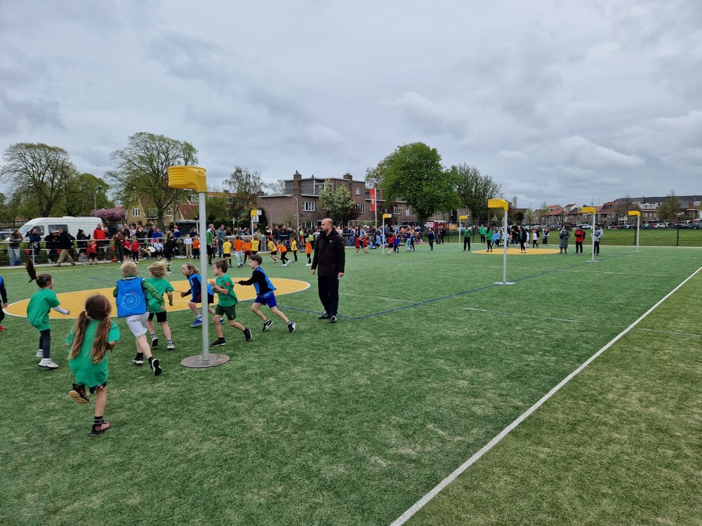 Afgelopen zaterdag was er weer het schoolkorfbaltoernooi dat HKC Haarlem dit jaar, samen met de andere Haarlemse verenigingen, op ons sportcomplex mocht organiseren. Ten opzichte van voorgaande edities was alles nét iets professioneler georganiseerd. Een leuke nieuwigheid was de razende reporter die live aan de spelers en bezoekers om hun ervaringen vroeg. Complimenten aan alle vrijwilligers die de hele dag, of een deel daarvan, actief zijn geweest.