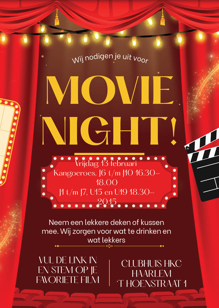 Op vrijdag 13 februari verandert het clubhuis van HKC Haarlem in een heuse bioscoop! Neem je favoriete knuffel, kussen of deken mee en neem plaats. Via de link kun je zelf kiezen welke film we gaan kijken. Meeste stemmen gelden. De AC zorgt voor iets lekkers voor tijdens de film.
